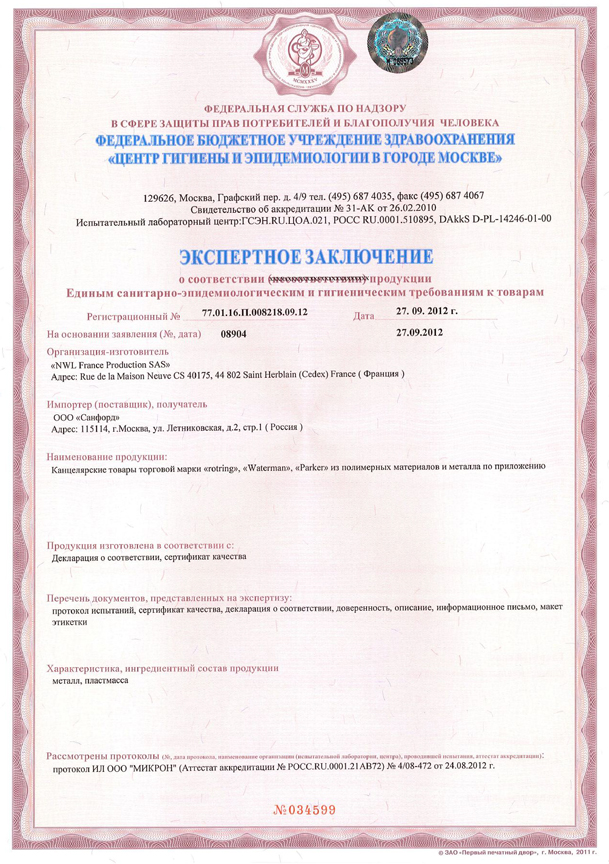 Сертификаты - Официальный дилер PARKER в Первоуральске