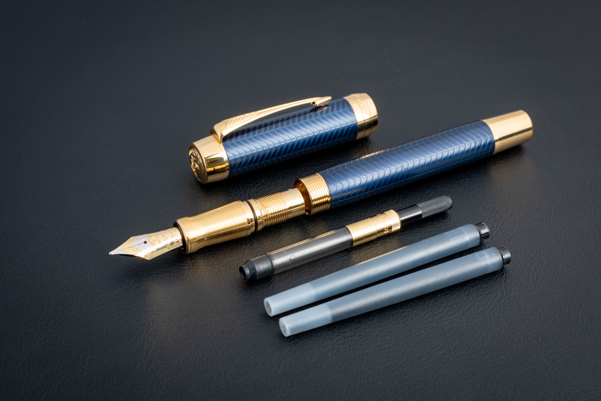 Перьевая ручка Parker Duofold Prestige Centennial Blue Chevron GT (M) от официального дилера Parker в Первоуральске. Вы можете дополнительно заказать гравировку, которая подчеркнет Вашу оригинальность и придаст памятность статусному подарку. Все ручки Паркер поставляются в фирменном футляре.