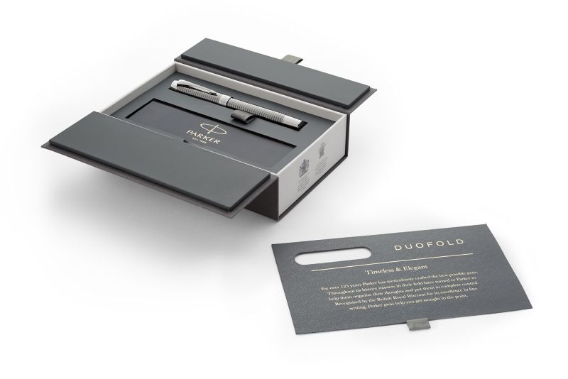 Ручка роллер Parker Duofold Prestige Ruthenium Chiselled CT от официального дилера Parker в Первоуральске. Вы можете дополнительно заказать гравировку, которая подчеркнет Вашу оригинальность и придаст памятность статусному подарку. Все ручки Паркер поставляются в фирменном футляре.