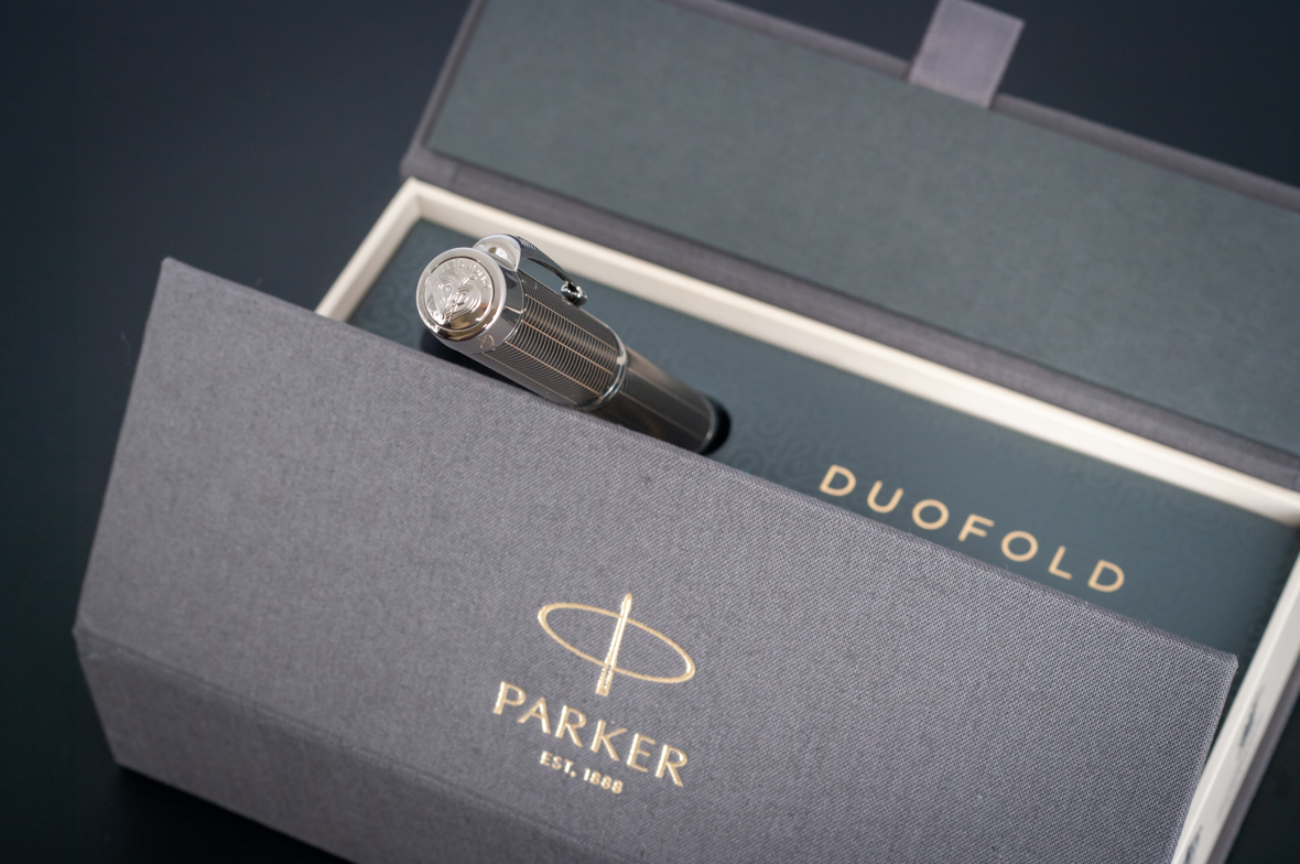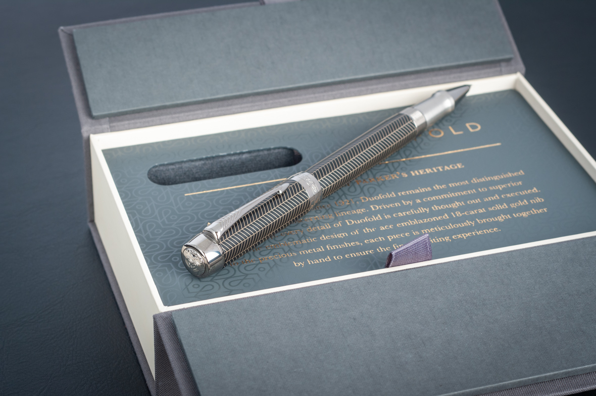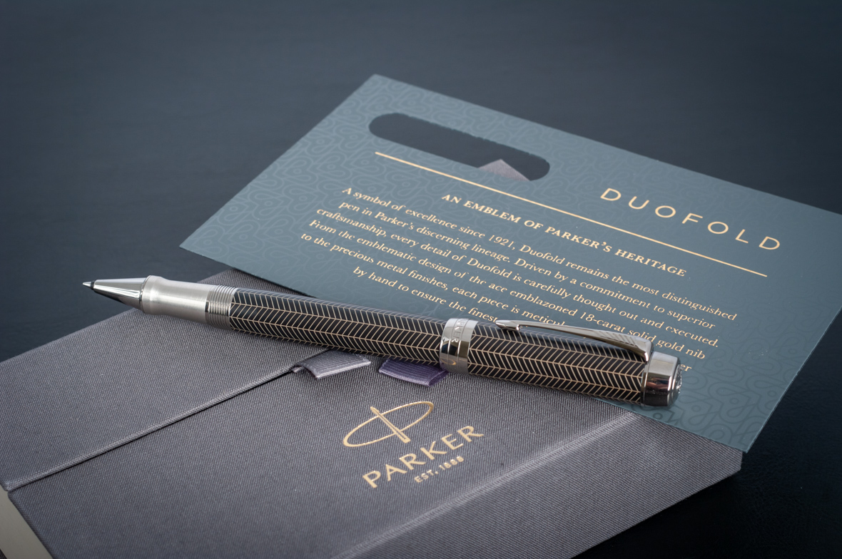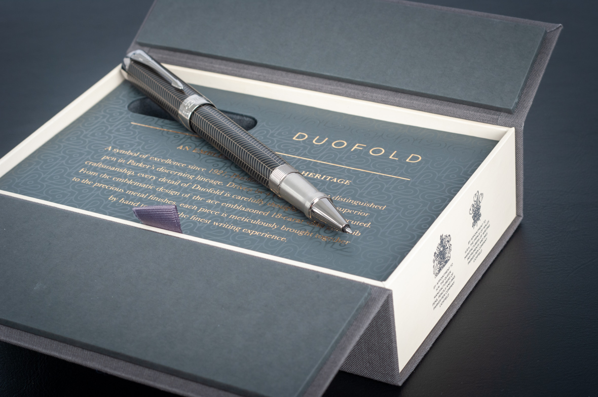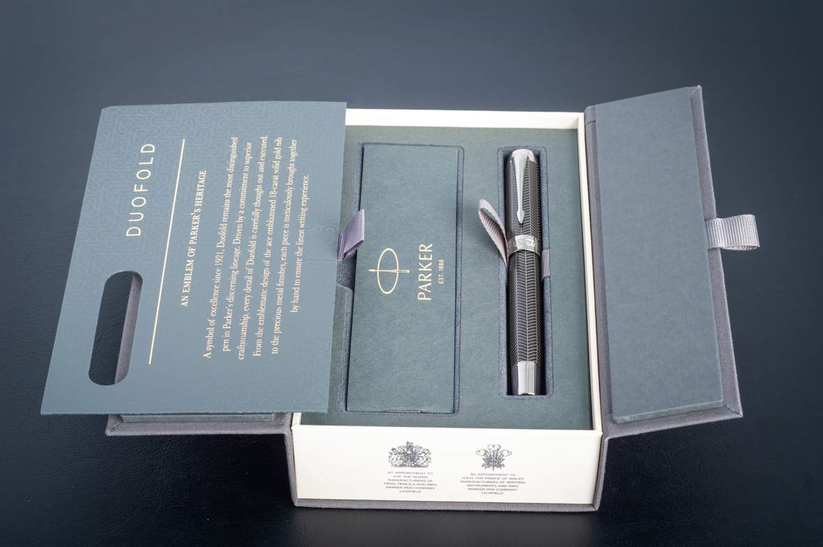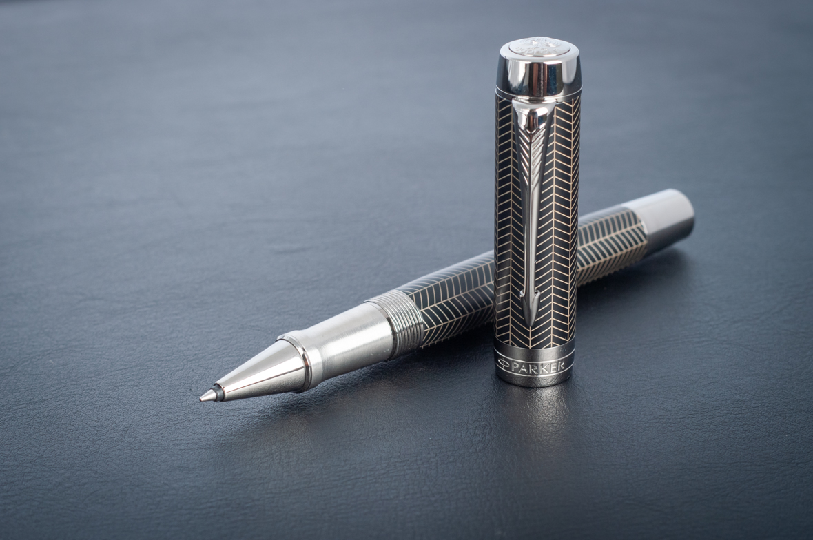 Ручка роллер Parker Duofold Prestige Centennial Black Chevron CT от официального дилера Parker в Первоуральске. Вы можете дополнительно заказать гравировку, которая подчеркнет Вашу оригинальность и придаст памятность статусному подарку. Все ручки Паркер поставляются в фирменном футляре.